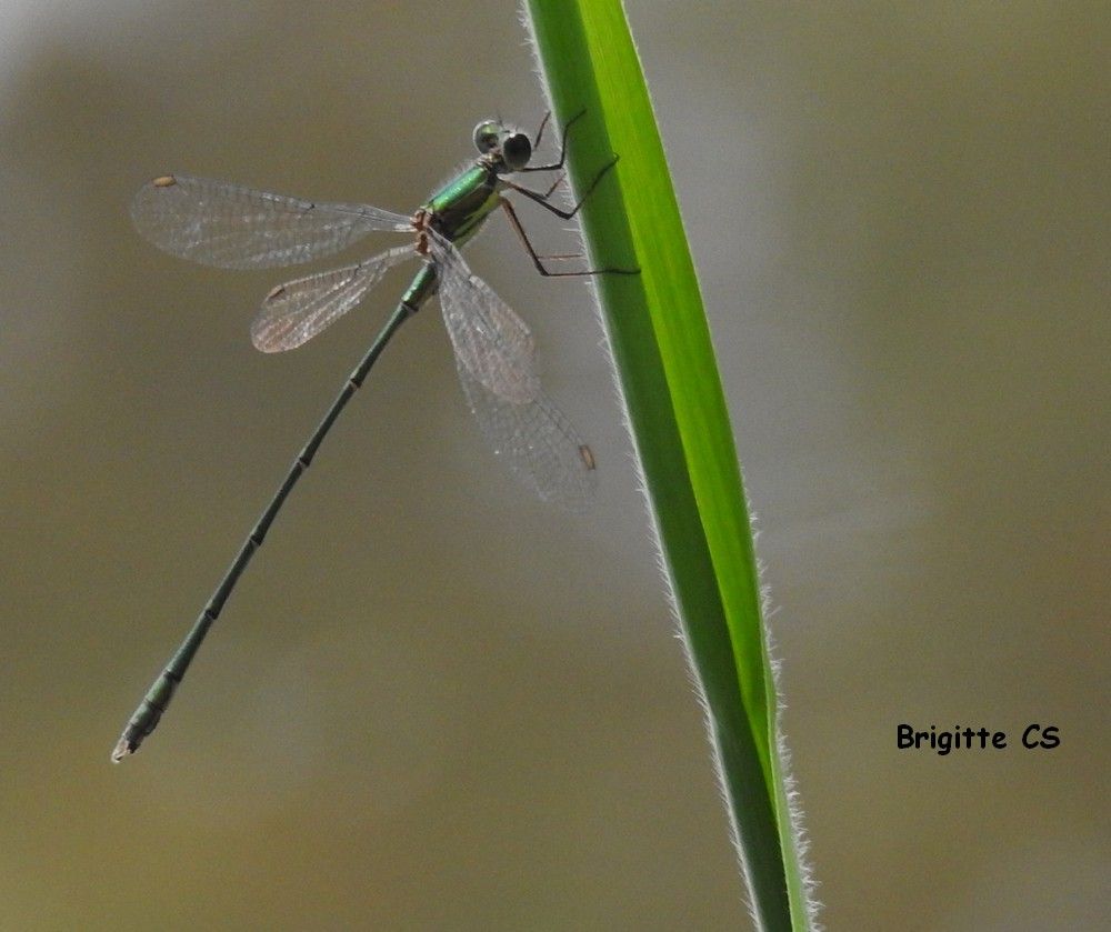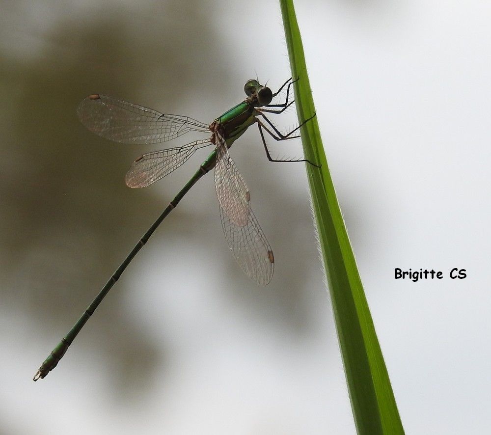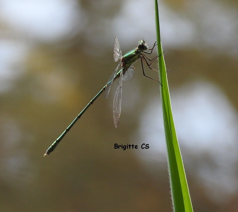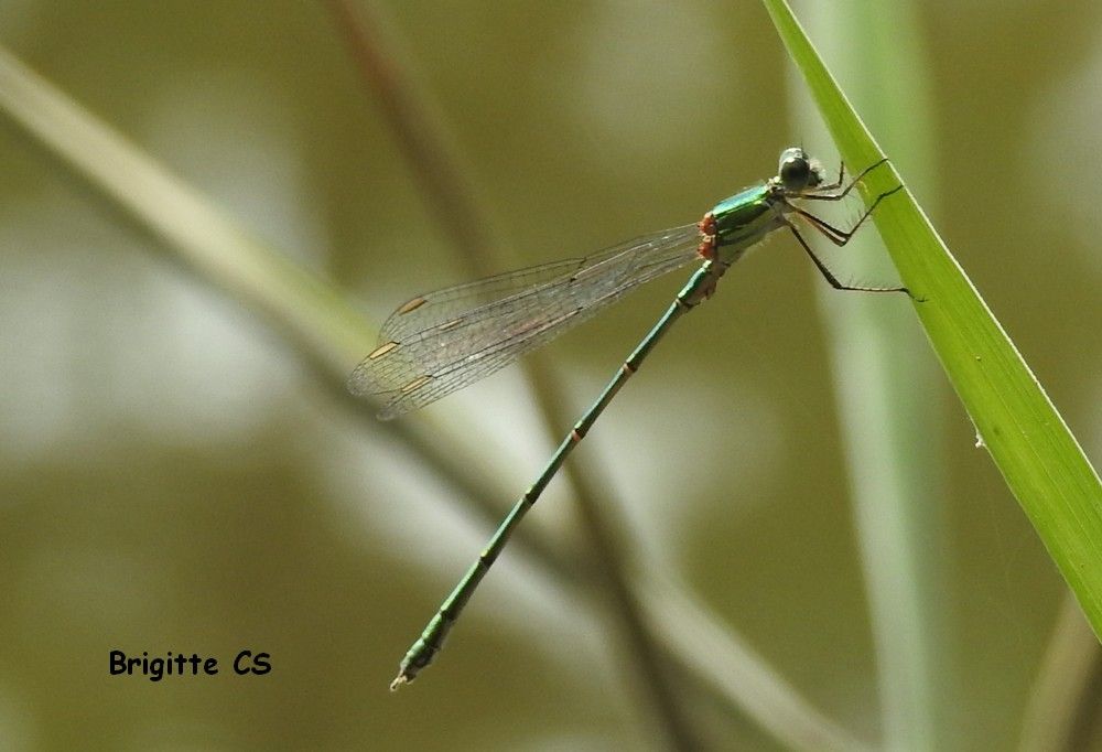 Par contre une libellule verte s'est accrochée à une herbe me permettant de la photographier :