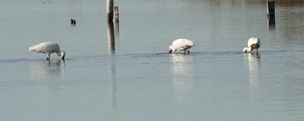 Ce n'est qu'en agrandissant mes photos, de retour à la maison que je me suis aperçue qu'il s'agissait de spatules blanches.