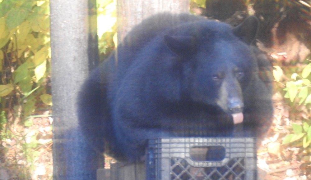 Les photos prises lorsque j'ai pu sortir sont plus nettes, mais l'ours ne regardait pas. Dommage...