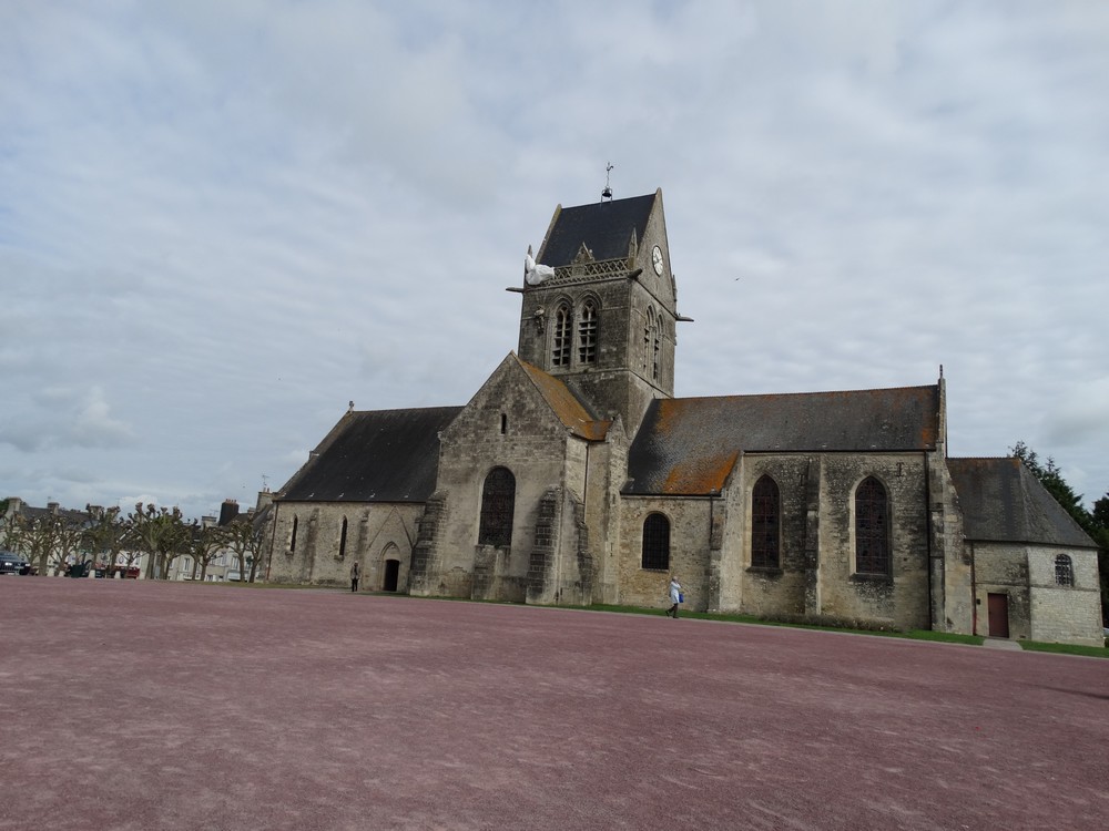 Début juin, lors de ma balade en Normandie, je me suis arrêtée dans ce village et j'ai découvert cette église avec son parachutiste accroché pour l'éternité.