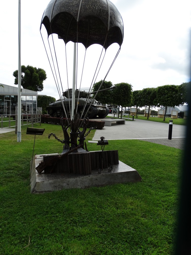 Sainte-Mère Eglise a vu des parachutistes "pleuvoir" sur le bourg et ses alentours durant la nuit du 5 au 6 juin 1944. Le souvenir des événements qui ramenèrent la paix en Europe est encore bien présent : l'église, le musée des troupes aéroportées ou la batterie d'Azeville sont autant de témoins qui rappellent que la paix tient à peu de choses. Le soldat John Steele est resté accroché avec son parachute au clocher de l'église lors de l'opération Overlord. (Sources : http://www.normandie-tourisme.fr/articles/sainte-mere-eglise-a-voir-a-ne-pas-manquer-html-409-1.html et wikipédia).